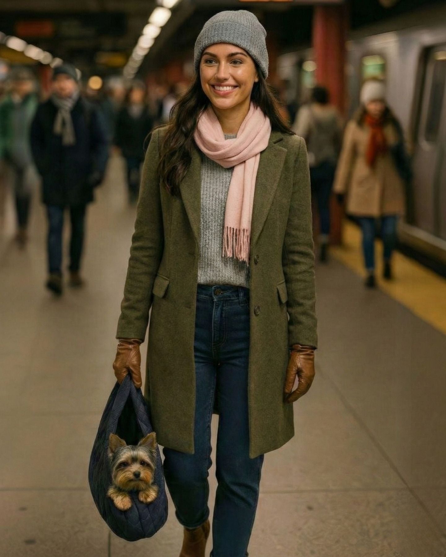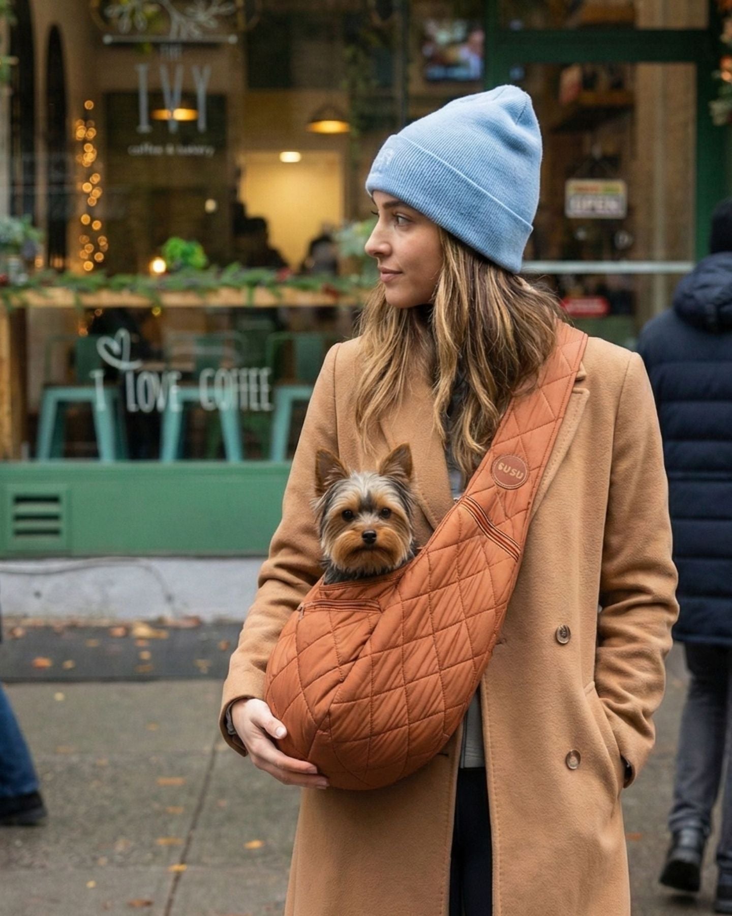 My dog absolutely LOOOVES her carry in this. She is only about 5lbs (& she has a lot of hair lol) and she can sit perfectly in here. It definitely took some time to get used to the feel once there’s weight in the pouch (since it is otherwise really lightweight), but once we found our groove I immediately appreciated the concept. I love to walk but I can’t ever go far if I take my dog with me so this was the perfect solution for us!!